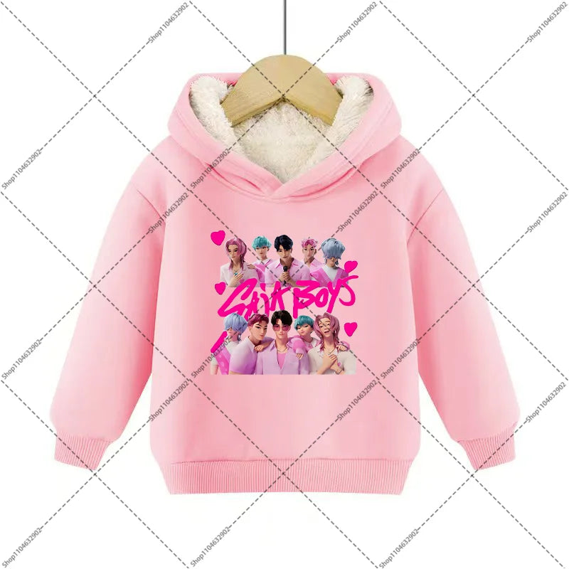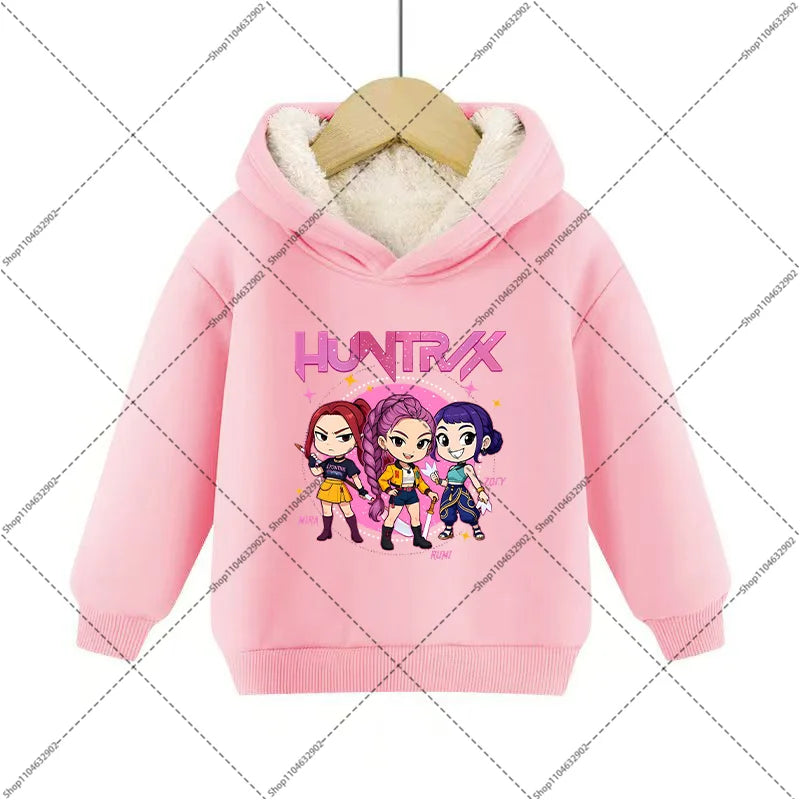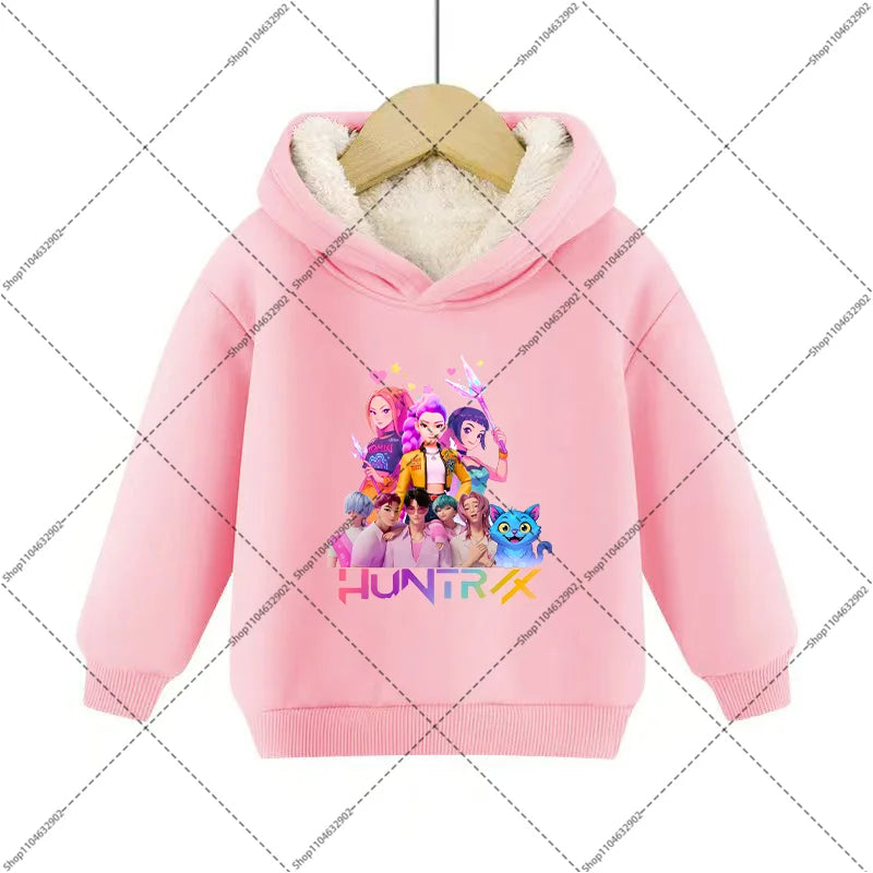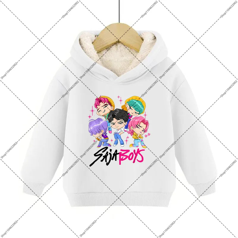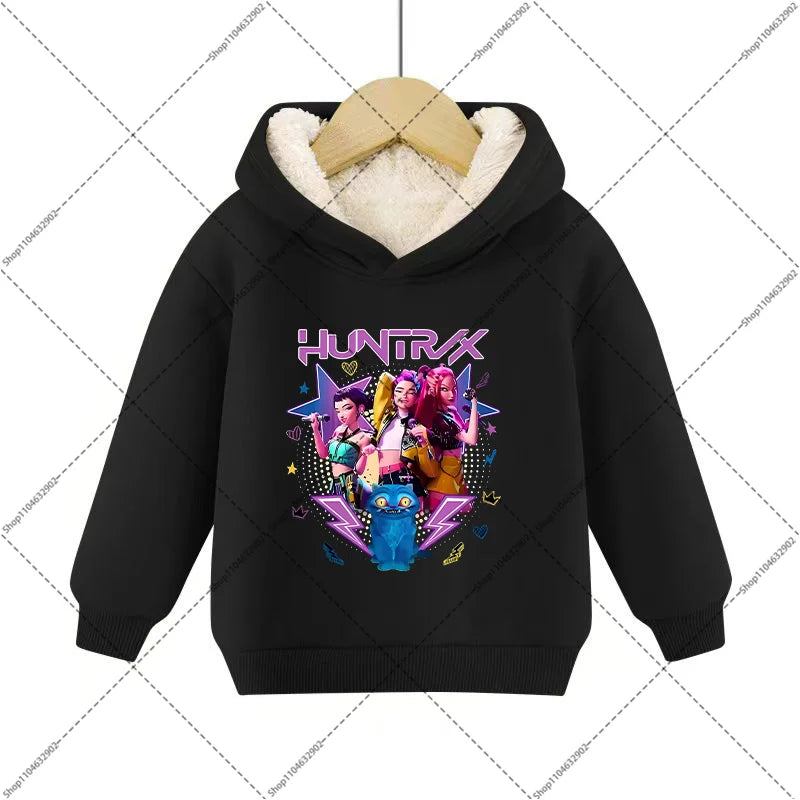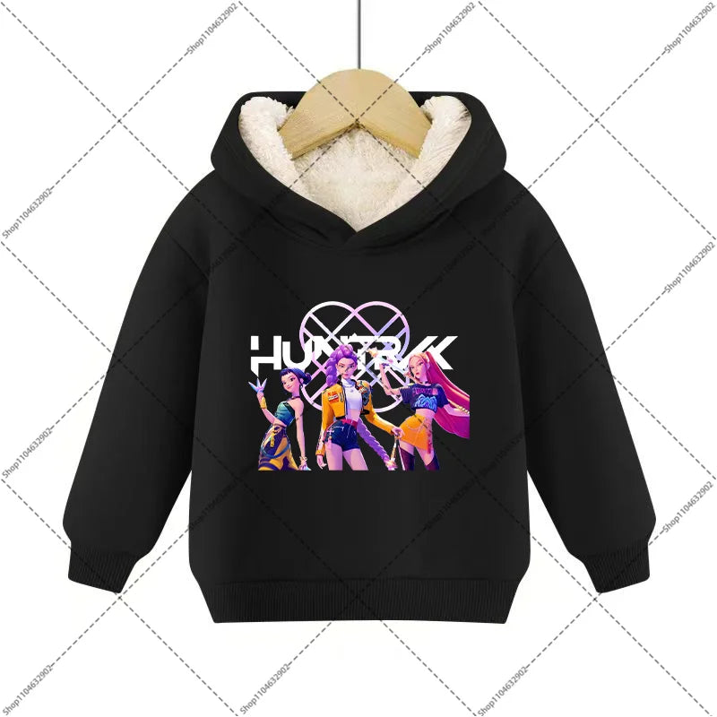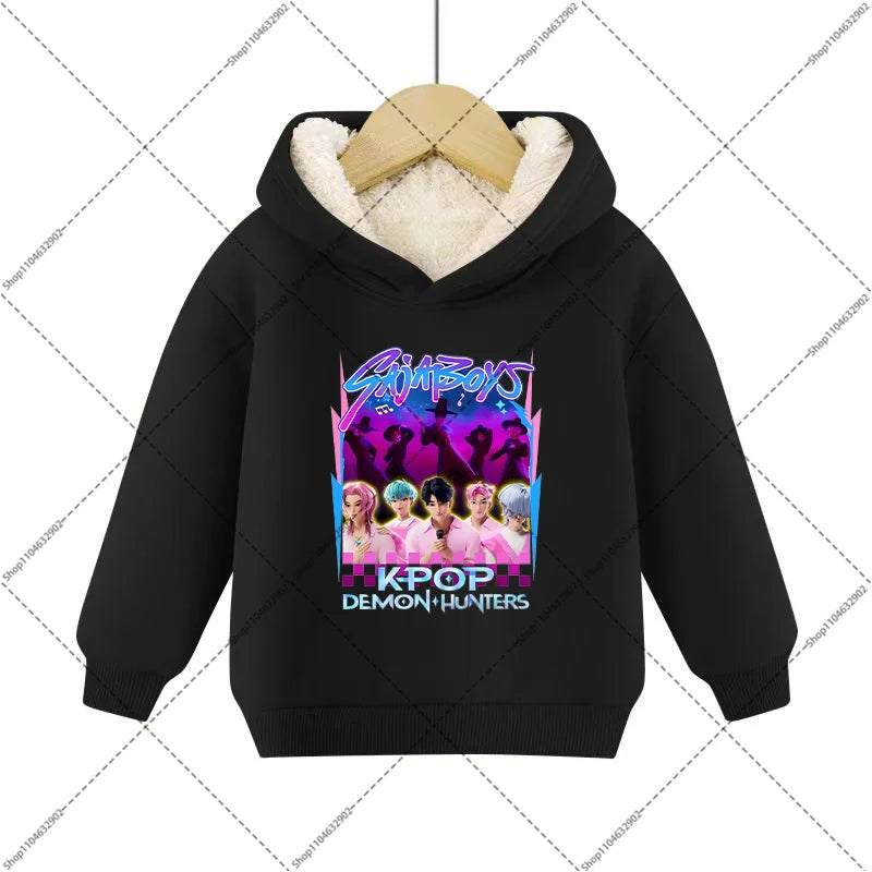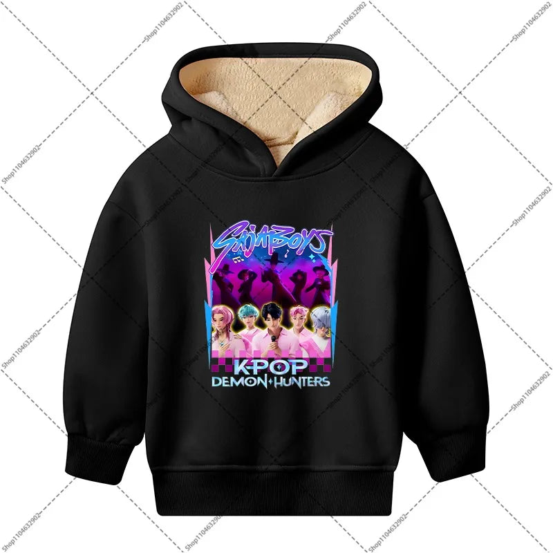 💖 Douceur, chaleur et style K-Pop réunis ! Ce sweat à capuche en imitation cachemire est parfait pour garder votre enfant bien au chaud tout en affichant un look inspiré de ses héros Demon Hunters préférés.