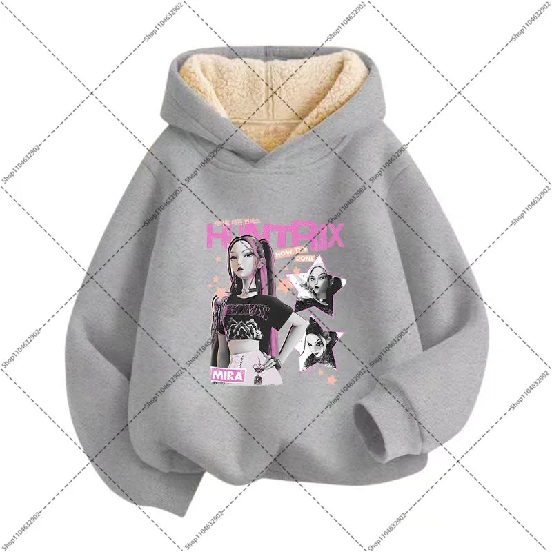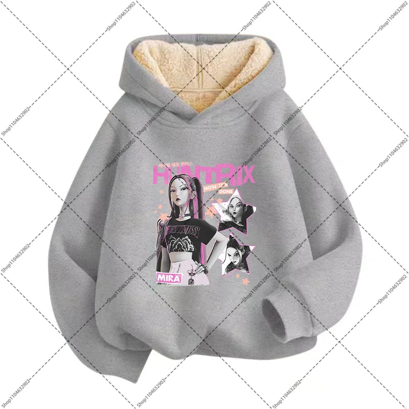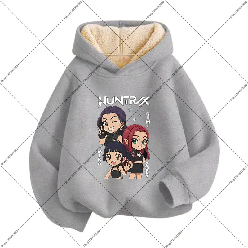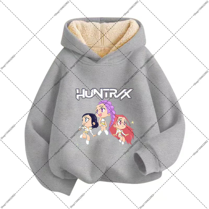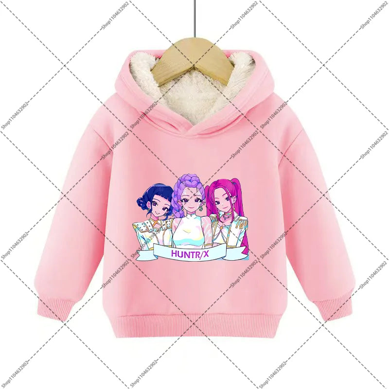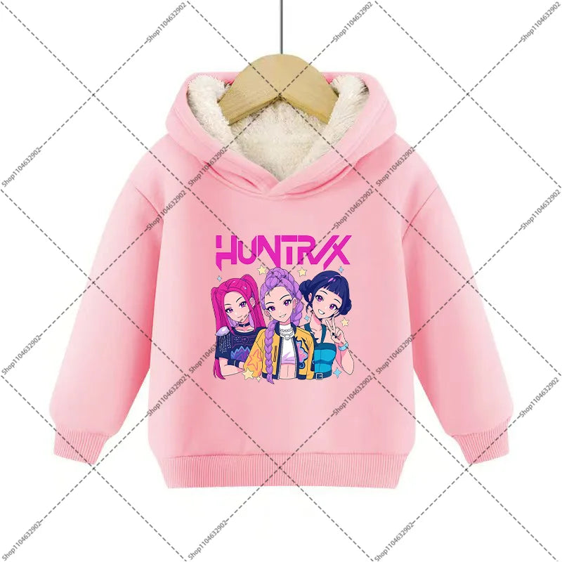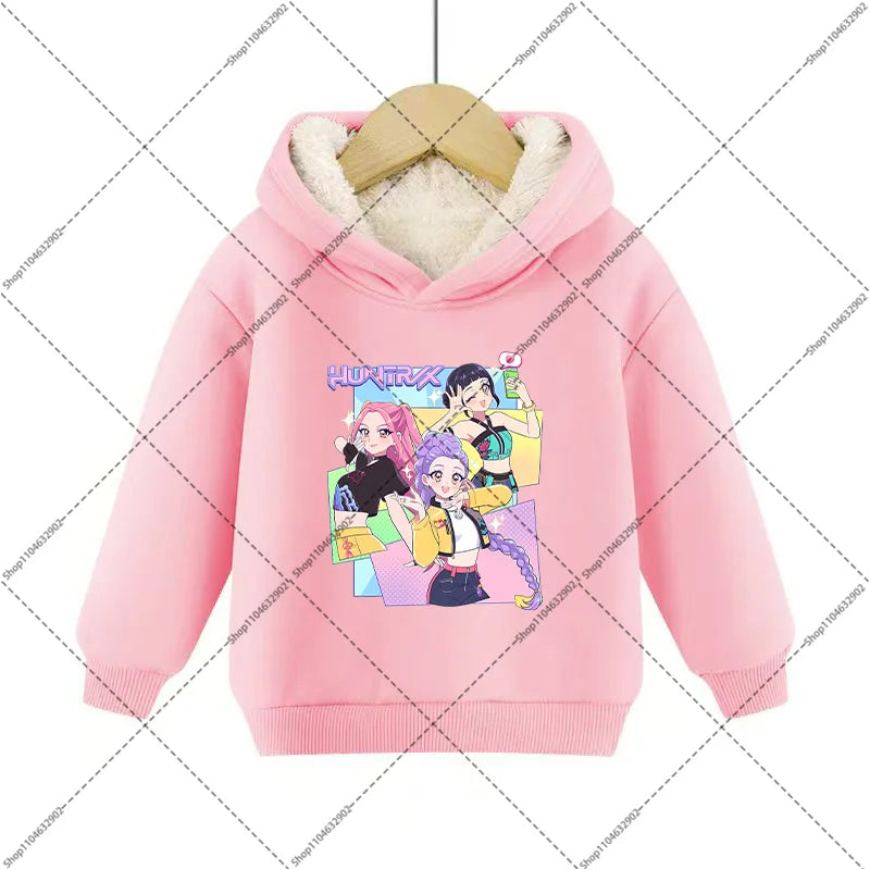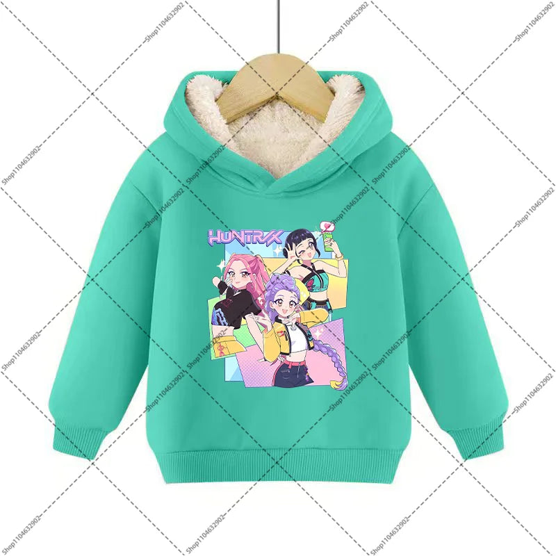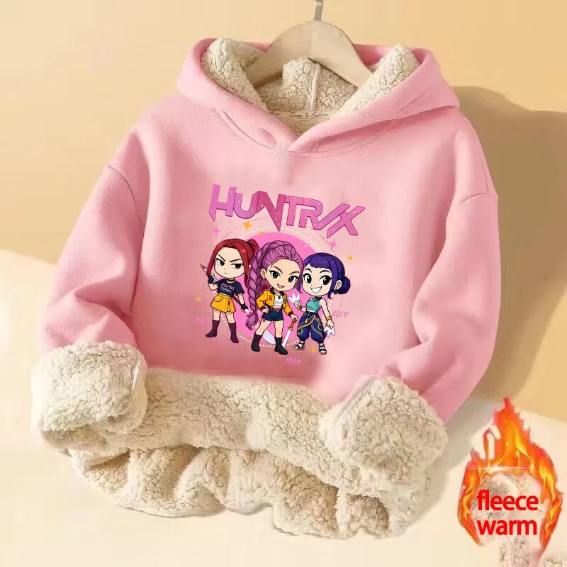 💖 Douceur, chaleur et style K-Pop réunis ! Ce sweat à capuche en imitation cachemire est parfait pour garder votre enfant bien au chaud tout en affichant un look inspiré de ses héros Demon Hunters préférés.